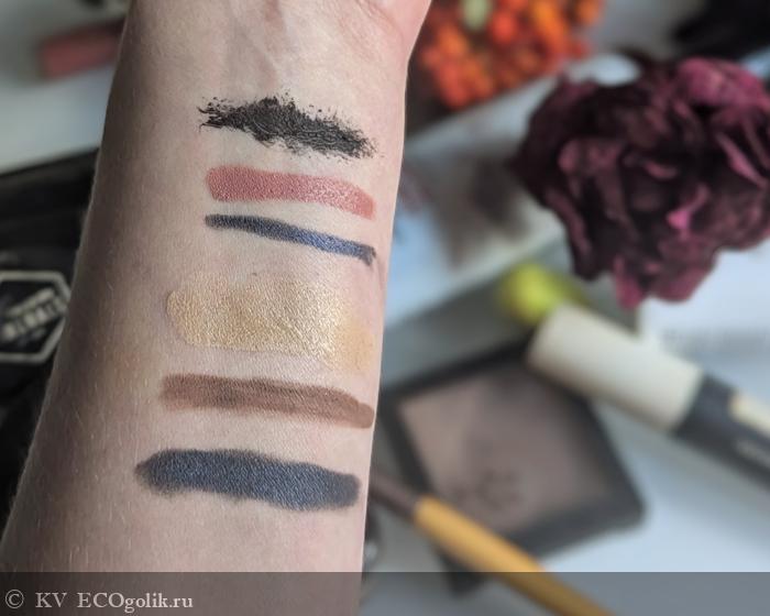 снизу вверх: тени, тени, вв, карандаш, помада-карандаш, тушь