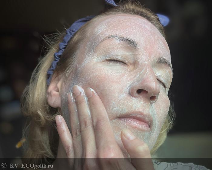 После, буквально за несколько секунд смываю слегка теплой водой, при этом, как бы все еще помассировав кожу. Можно и миновать воздействия "квартирной" хлорки, протерев кожу минералкой или гидролатом.