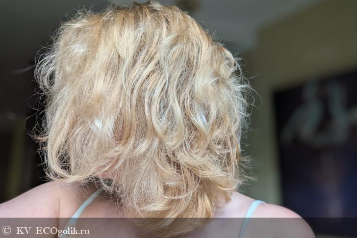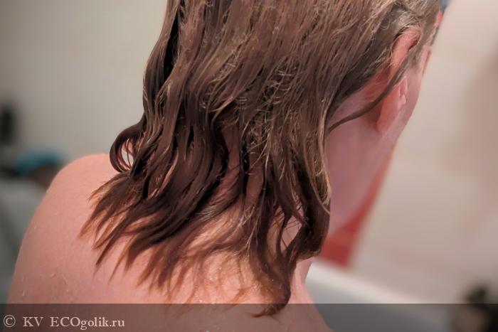Волосы после мытья приятные на ощупь, объемные и при этом излишне не пушатся (а у меня все же окрашенные, пористые и волнистые волосы, без четкого завитка).
