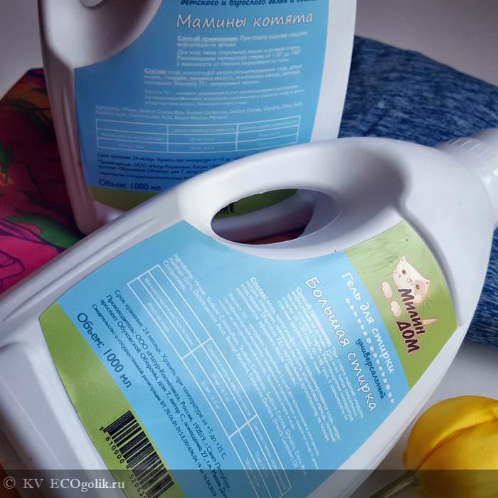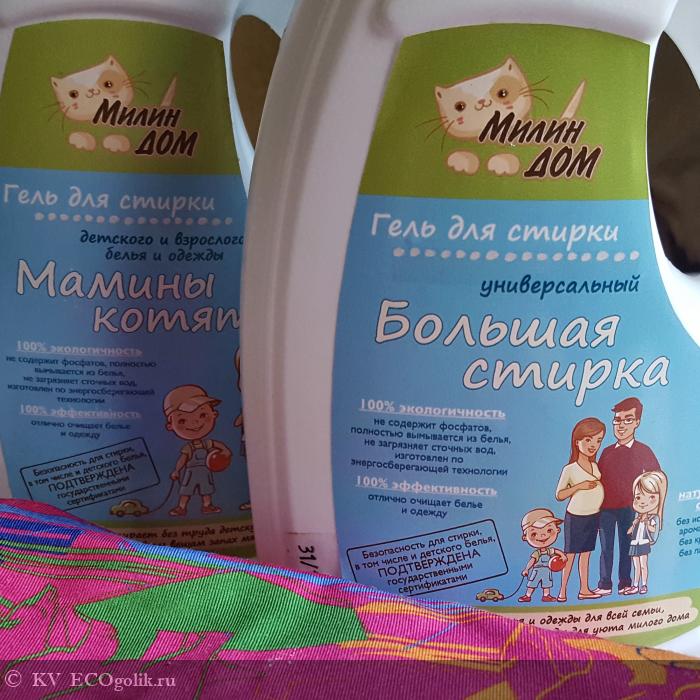 Под маркой Милин дом выпускаются 4 вида средства для стирки. Я выбрала 2 наиболее соответствующих нашим потребностям и в итоге решила написать отзыв 2в1))) Итак, насколько же хороши гели для стирки Большая стирка и Мамины котята?!