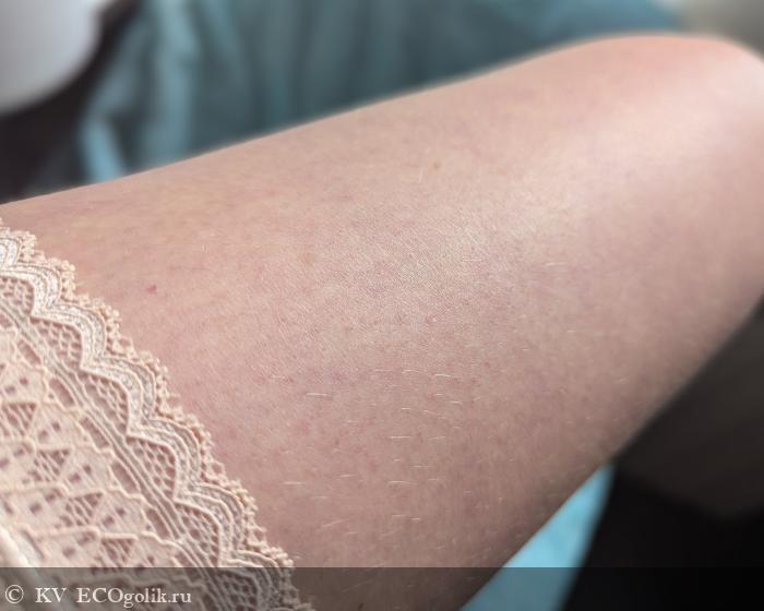 Дополнительный бонус - препятствует образованию вросших волосков и помогает бороться с «гусиной» кожей.