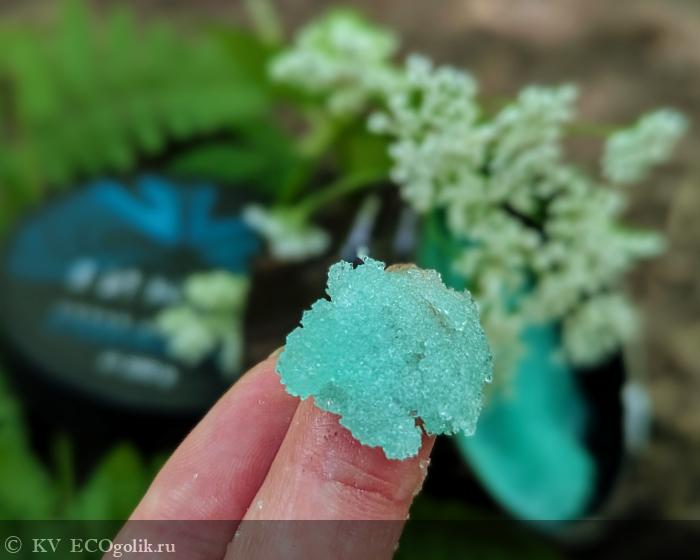 Не слишком аккуратно срезав фольгу по ободку, я буквально ахнула от восторга. Более оригинального цвета скраба я никогда не встречала. Фантастика, великолепие, волшебство - это лишь немногие эпитеты для оттенка чистой бирюзы морской волны, будто на экзотическом необитаемом острове. Вообще, визуализация от скраба от и до вызывает эстетское наслаждение.