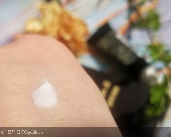 Сам крем чистого белого цвета, имеет легкую и нежную текстуру, которая легко разносится.