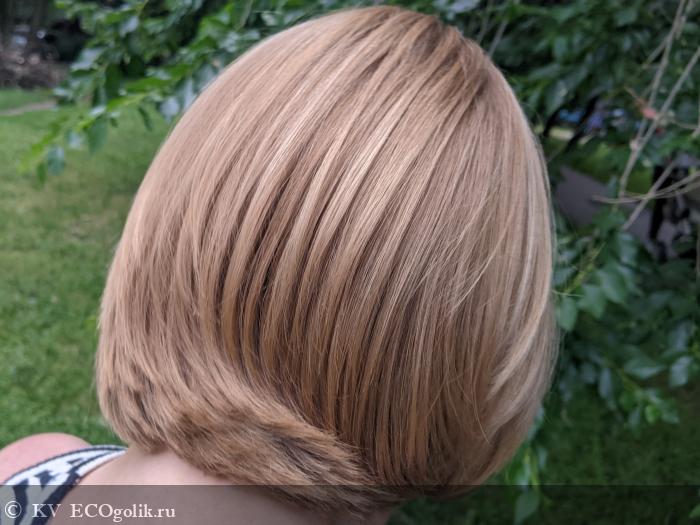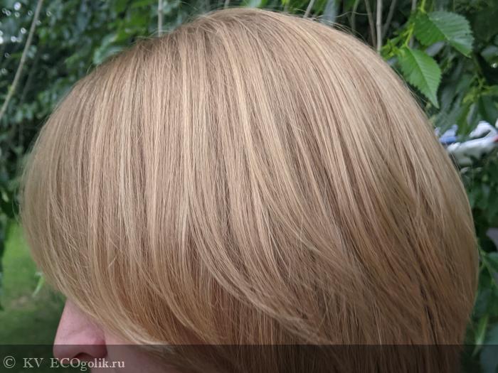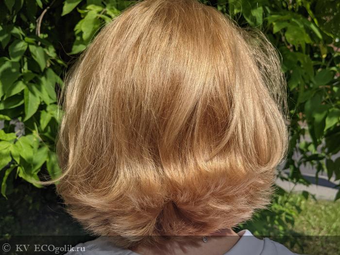 На фото сверху и снизу волосы высушены естественным путем, но я несколько раз придавала им форму просто круглой расческой без фена, поэтому они не волнистые. Мне очень нравится качество волос, их плотность, пышность, приличный прикорневой объем, очень красивый блеск и в целом ухоженный вид.