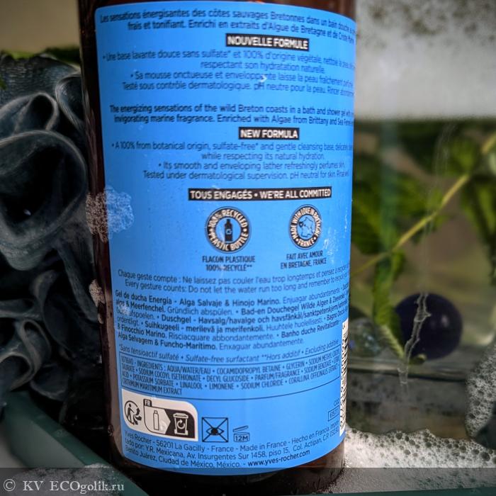 На обратной стороне вся пользовательская информация на французском (была еще наклейка с русским дубляжом - но я ее просто оторвала для эстетики): описание, состав, условия хранения, экопринципы производителя и т.д.