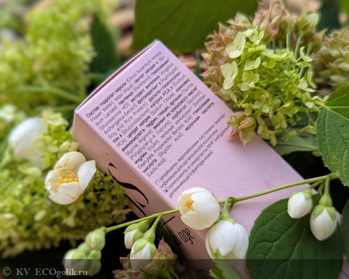 Во первых сразу подкупило, то что основа не вода, а гидролат нероли - обладающий успокаивающими, регенерирующим и увлажняющими свойствами. Освежает кожу, повышает эластичность кожи, укрепляет стенки сосудов, восстанавливает естественный баланс, выравнивает цвет лица и придает сияющий вид.