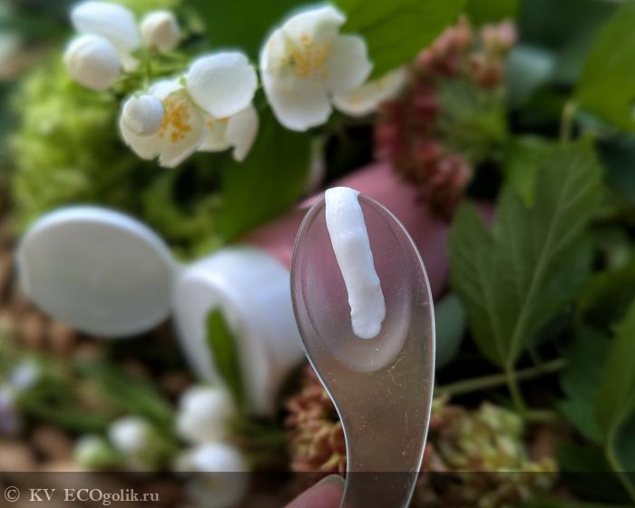 Кондиционер имеет приятную кремовую текстуру. Консистенция достаточно густая и плотная, не течет, и при этом не притормаживает при нанесении.