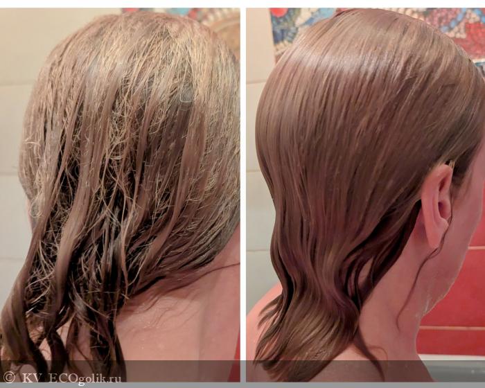 Еще до смывания ощущается нежность и мягкость волос, пятерня легко среди них проскальзывает.