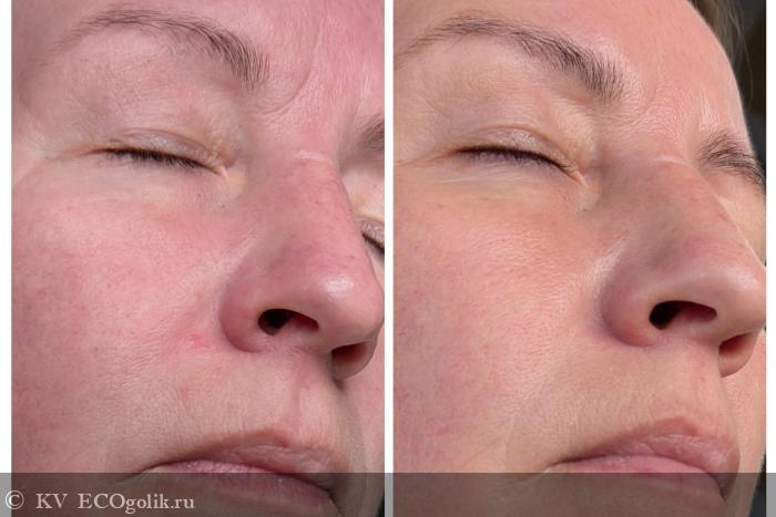 до и после 10 минут , сыворотка нанесена на все лицо включая веки