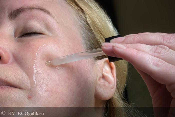В итоге из пипетки она не подтекает и с пальчиков при нанесении убежать не норовит, а вот если переносить сразу на лицо, то стекает, хотя и не очень стремительно.