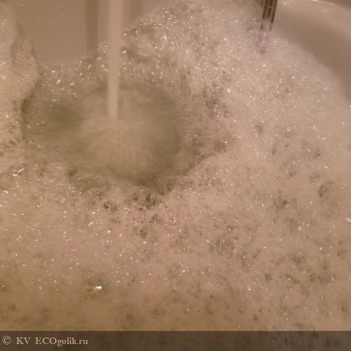Как только я начинаю набирать воду в ванну, я не наливаю пену непосредственно под струей воды, я ее набираю на руки и как бы размыливаю под напором воды. Так весь продукт уходит в пенообразование, пены становится разительно больше и она более легкая и объемная