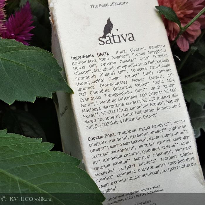 Вода, Глицерин, Пудра бамбука , Масло сладкого миндаля , Цетеарил оливат, сорбитан оливат, Масло макадамии, Масло клещевины, Экстракт жимолости СК-СО2, Экстракт календулы СК-СО2, Молочная кислота , Гуаровая камедь, Ксантановая камедь, Экстракт лаванды СО2, Экстракт маклейи СК-СО2, Экстракт плодов ананаса, Экстракт цедры лимона, Витамин Е, Экстракт побегов шалфея СК-СО2