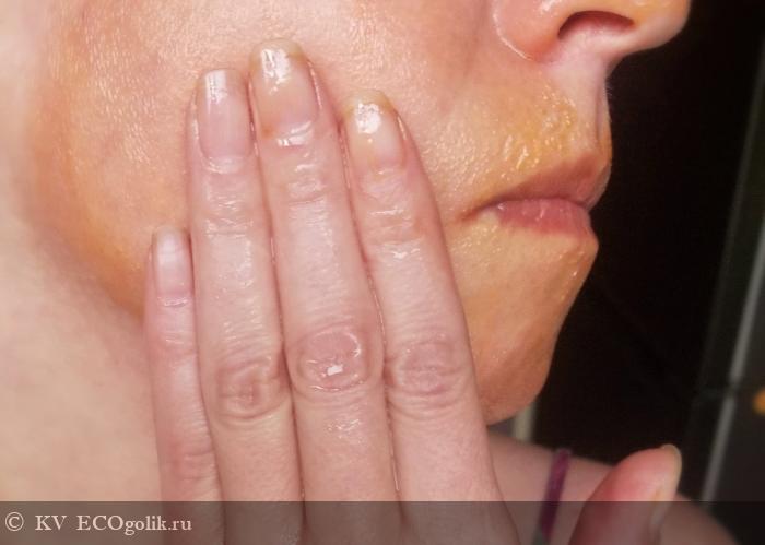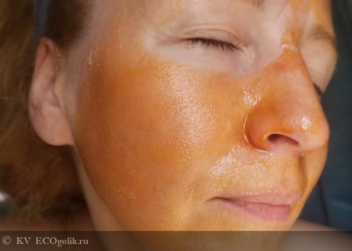 Смывание маски обеспечивает деликатнейший, но эффективный пилинг. Такой подойдет даже самой требовательной и чувствительной кожу, ведь он происходит в основном за счет ферментов меда, ананаса и органических растительный кислот, но все же есть и механическая эксфолиация-шлифовка мельчайшими пудровыми частичками корня орорута и красной глины.