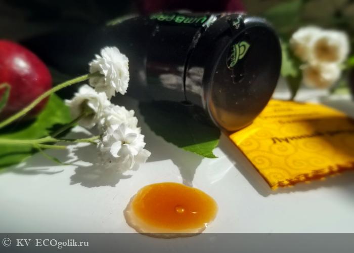 За почти 20 лет экоголизма чего я только не видела, но такое средство для умывания у меня впервые! Консистенция у бальзама текучая медовая, немного масляная, но не залипучая, и не жирная. Он очень нежно разносится по влажной коже тонким слоем, не убегает, не стягивает и не подсыхает даже во время 10-ти минутной экспозиции.