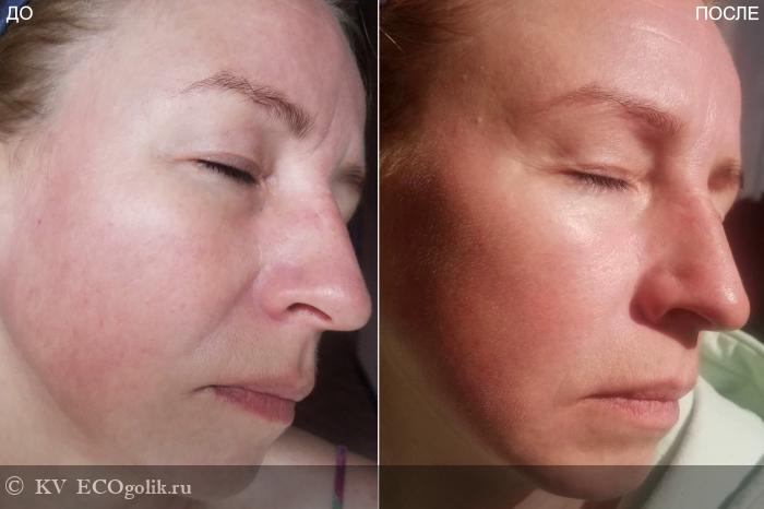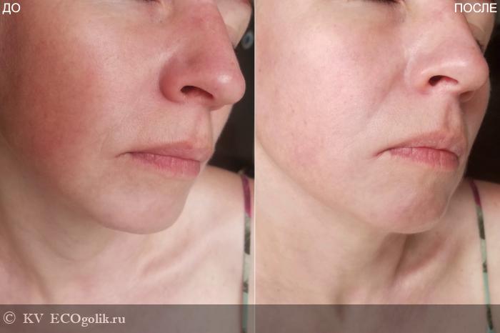 Кожа после маски не просто чистая - она обновленная! Процедура круто освежает, извините за избитую фразу, кожа начинает дышать каждой порой. Маска убирает сальные пробки, делает поры более светлыми и едва заметными. Мне нравится, как она одновременно работает и с рельефом, и с тоном кожи - результат - выглаженное, наполненное здоровым сиянием, фарфоровое личико.