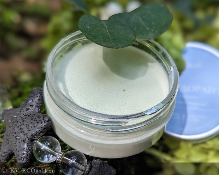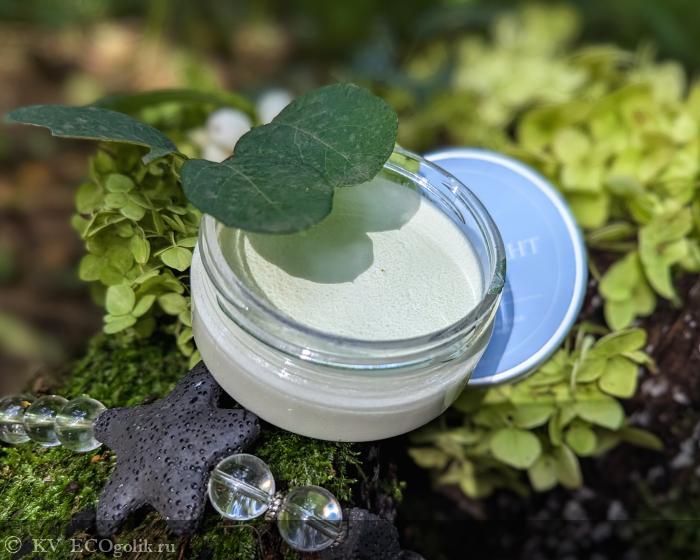 Дезодорант находится в пластиковой баночке-шайбе с откручивающейся алюминиевой крышкой. Оформление нежное, и, как я люблю, лаконичное.