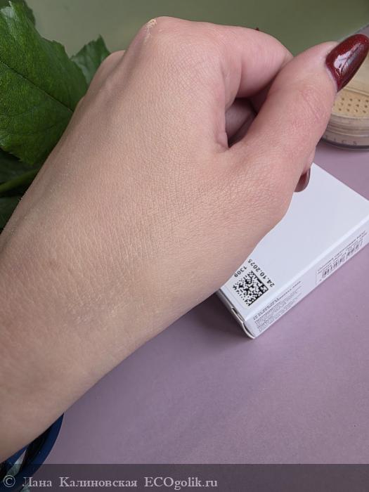 Текстура - это настоящая магия. Открывая баночку ожидаешь увидеть сухой порошок тонкого помола. Но тональная основа невероятно приятная тактильно. Её текстура напоминает что-то среднее между компактной пудрой и рассыпчатой. В составе есть компоненты, улучшающие текстуру.