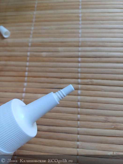 Упаковка: флакон из мягкого пластика с вытянутым носиком-дозатором и закручивающимся колпачком.