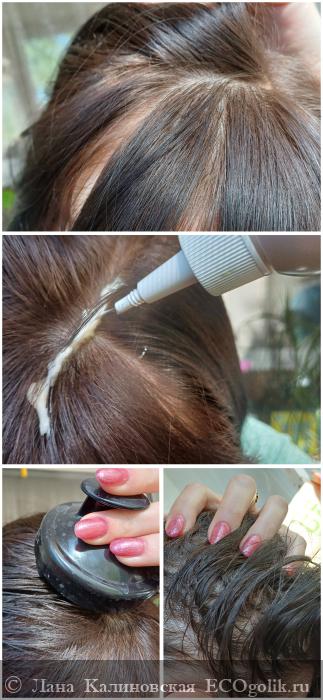 Наношу по проборам, распределяю по коже головы, делаю лёгкий массаж в течение нескольких минут. Надеваю шапочку и укутываю полотенцем.