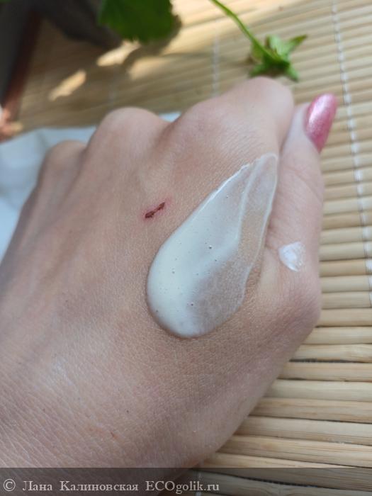 Консистенция кремовая, очень легко и комфортно распределяется по коже, не течет и не пересыхает.