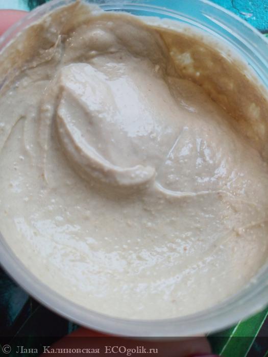 Текстура неоднородная, сложно назвать ее кремовой, больше напоминает пасту. Заметны мелкие комочки твердых масел и мука фасоли.