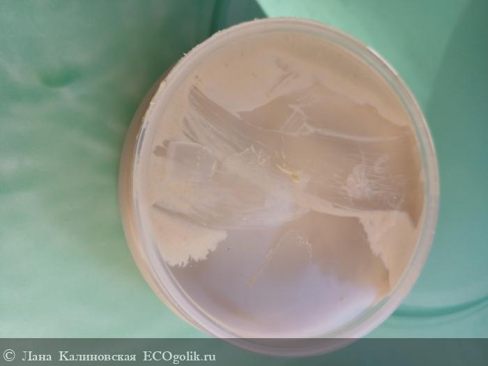 Дизайн очень свежий и аппетитный. Мне напоминает молочно-фруктовый коктейль. На дне баночки есть наклейка с информацией о средстве: состав, применение, условия хранения.