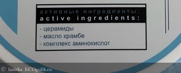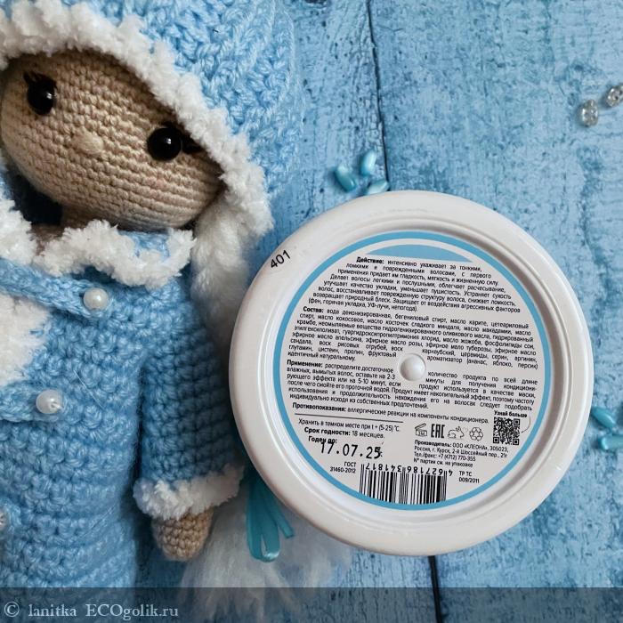 Кондиционер-маска находится в белой пластиковой баночке-шайбе. Пластик не очень плотный, прожимающийся при сдавливании, но абсолютно устойчивый.