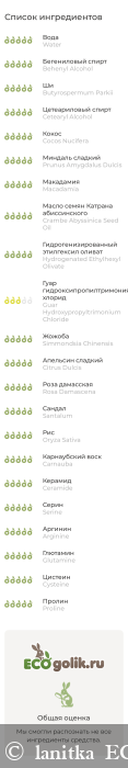 Самым спорным из нераспознанных компонентов является фруктовый ароматизатор (ананас, яблоко, персик) идентичный натуральному. Но я к подобным ароматным добавкам отношусь без опаски, тем более я уверена в производителе.