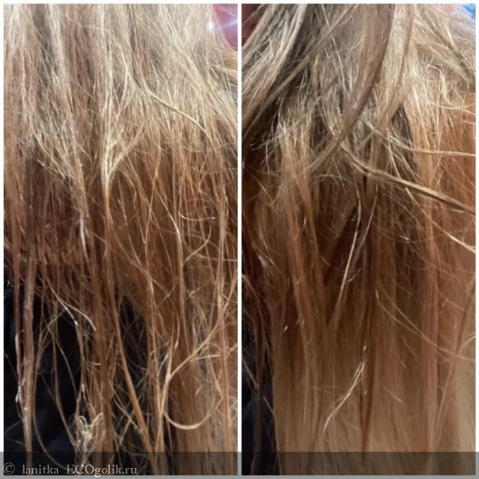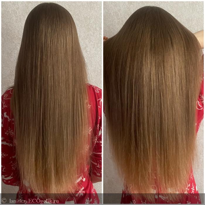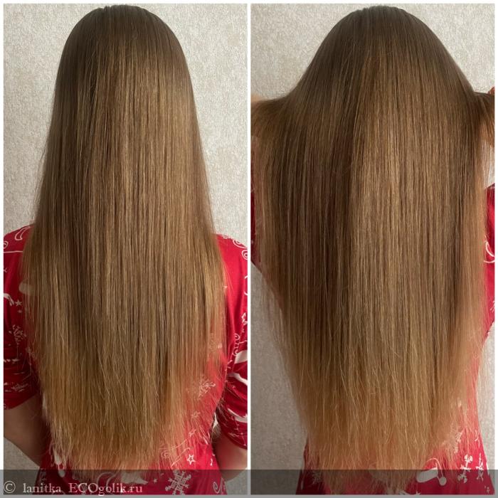 Конечно, на фото свое дело делает яркость освещения, но тенденция все равно заметна: кондиционер-маска действительно имеет накопительный эффект, волосы по мере использования становятся плотнее, более упругими и гладкими. Что становится все более заметно на длинной дистанции.