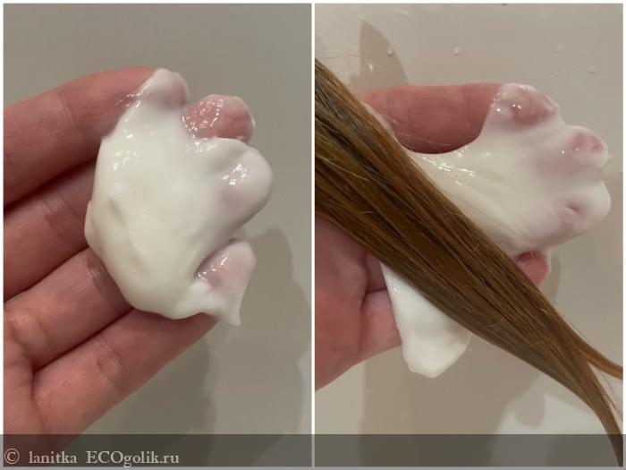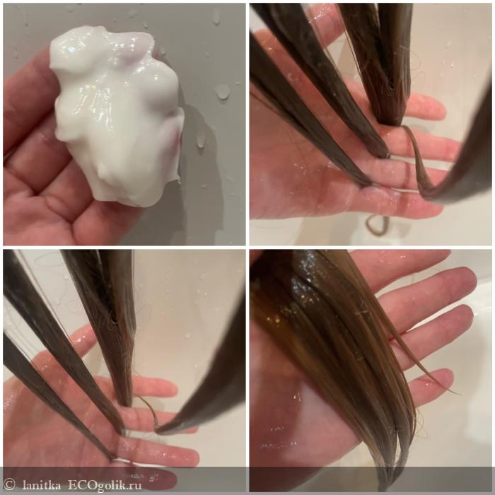 Волосы уже во время смывания чувствуются очень разглаженными, струящимися, будто ускользающими вместе со струями воды. Присутствует ощущение того, что волосы что-то легко обволакивает, но не излишне, а достаточно, без чувства липкости, непромытости.