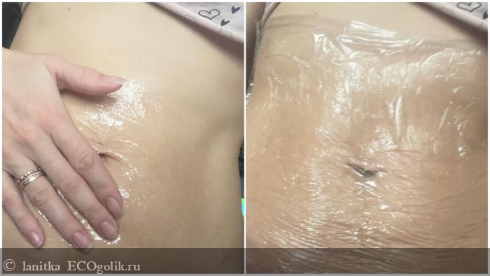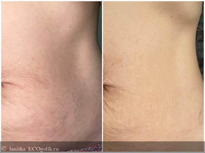 Прям вот ВАУ-результат, я конечно не вижу, сами растяжки, естественно, тоже никуда не делись, но! Кожа стала более плотная, более ровная, очень ощутимо разгладился я её рельеф, это и тактильно чувствуется и визуально заметно тоже.