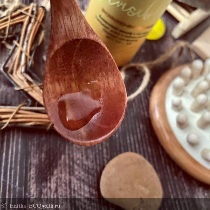На темной ложке кажется, что он абсолютно прозрачный, но это не совсем так, у пилинга красивый золотисто-янтарный оттенок, слегка мутноватый.