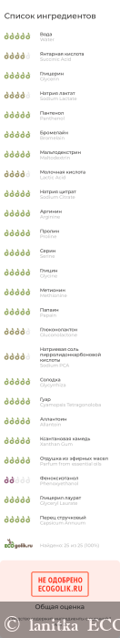 Состав в целом хорош, за исключением консерванта Sensicare C1000, в состав которого входит феноксиэтанол. Я непосредственно к этому компоненту отношусь снисходительно, негативных реакций он у меня не вызывает. Но все же стоит обратить внимание на то, что он имеет место быть в составе.