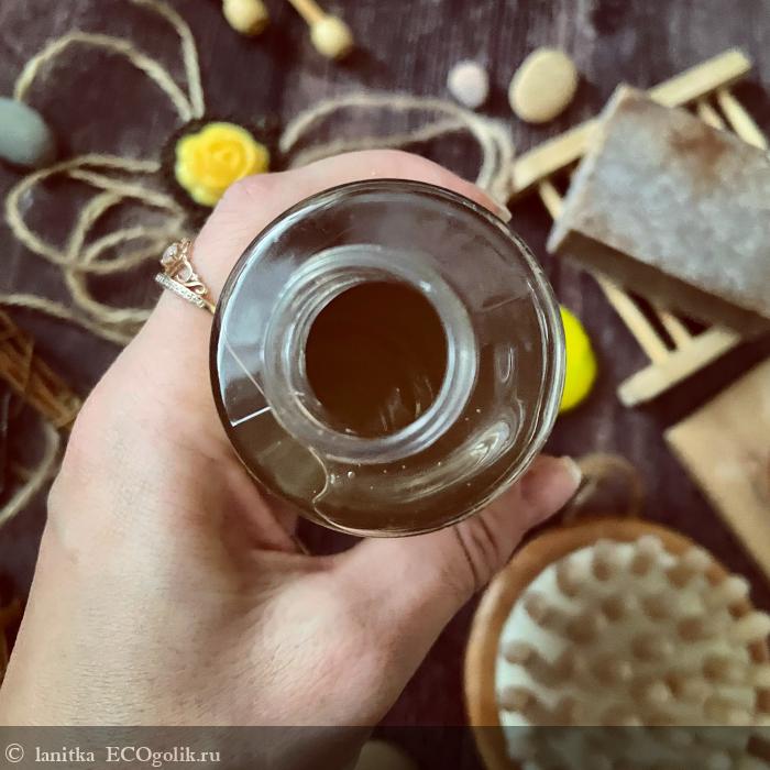 Флакон закрывается черной пластиковой крышечкой с удлиненным носиком.
