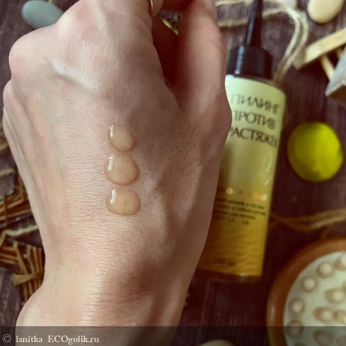 Пилинг имеет жидкую гелеобразную консистенцию. Форму не держит, текучий, абсолютно однородный.