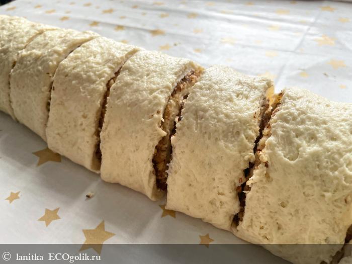 - Скрутить тугой рулет, разрезать на 12 равных частей.