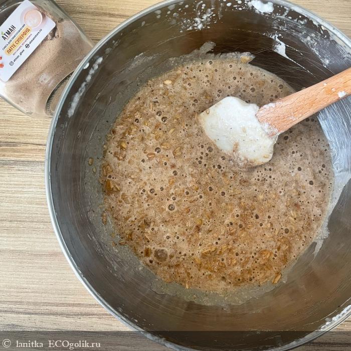 - Соединить овсянку с яично‑сахарной смесью, мукой и смесью Латте.