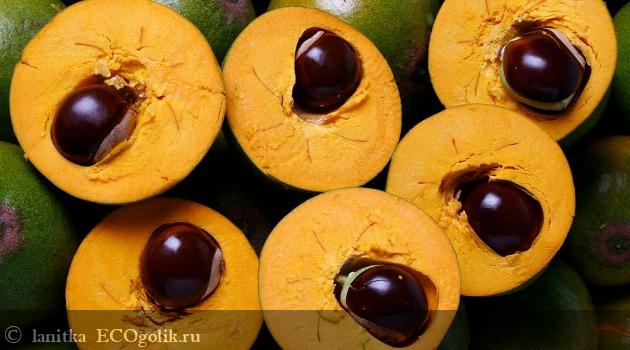 содержит бета-каротин, полезный для зрения и снижающий риск возникновения рака печени, кишечника и поджелудочной железы, железо и витамин В3. Порошок лукумы насколько сладкий, что может служить натуральной и полезной альтернативой сахару, имеет интересный вкус, которые многие описывают как смесь абрикоса и манго.
