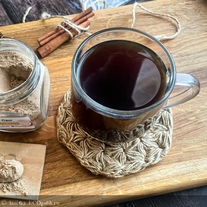 Есть прям ложкой из банки я, пожалуй, не буду. Вкус в сухом виде (я чуть-чуть лизнула 😅) не концентрированный, не яркий, абсолютно натуральный, слегка сладковатый, чуть ореховый с терпкой имбирной ноткой. Куда лучше он раскрывается все же при приготовлении.