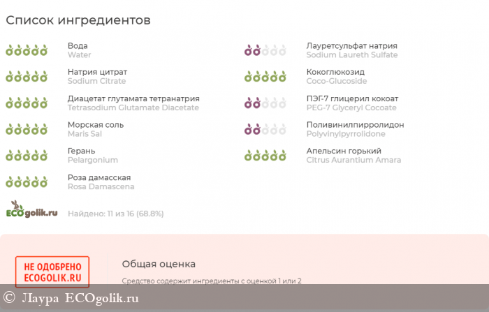Лауретсульфат натрия -вызывает раздражение кожи, сушит волосы и кожу. Может содержать токсичные примеси, например, 1,4 - диоксан (потенциальный канцероген). Загрязняет окружающую среду.