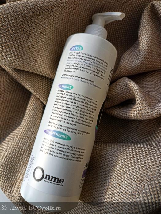 Я люблю больше кусковое мыло, ароматное, благоухающее на всю ванную комнату, заменяющее собой ароматизатор воздуха. Но иногда всё таки появляется интерес к другим и когда есть выгодная акция, то почему бы не взять на пробу? Выбор пал на жидкое мыло 'Лаванда - можжевельник' от Onme.
