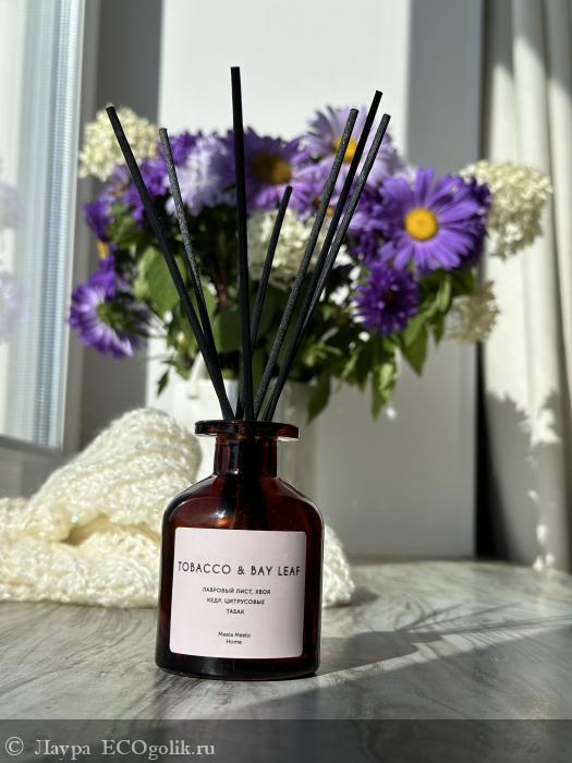 На мое удивление и радость оказывается эко бренды тоже их выпускают, тут уж я не устояла и купила. Встречайте героя отзыва: Аромадиффузор «Tobacco & bay leaf» от Meela Meelo.