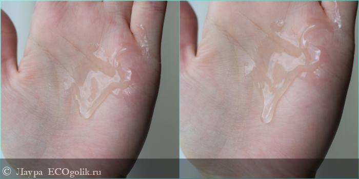Смывается гель быстро и легко. Смотрю на фотки при написании отзыва и мне кажется? или все таки нет, что даже на фотках ладони видно как он увлажняет? Или это я притягиваю за уши?