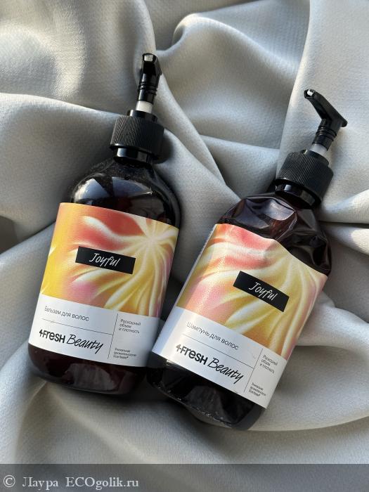 Снова соединю два отзыва в один, напишу про шампунь и бальзам в одном, ибо пользовалась ими вместе и они дополняют друг друга. Сегодня героями отзыва стали: Шампунь и бальзам для волос "Роскошный объем и плотность" от 4FRESH Beauty.