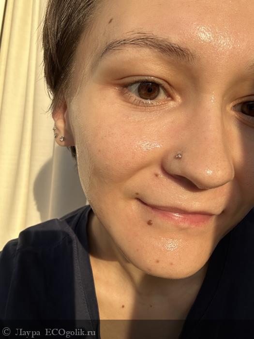 Использую маску я один раз в неделю, чередую с другой очищающей. Попробовала увеличить до двух применений, так делаю только хуже, не успевает кожа восстановиться. Самый оптимальный вариант вот, раз в неделю. Через несколько дней другая маска. (Ее просто тоже надо заканчивать уже.) На одно применение мне хватает три полных нажатия. Во время процедуры у меня нет дискомфортных ощущений, у меня даже на кислоты нет реакций. Хотя покраснение, покалывание и небольшое жжение допустимы. Мне же комфортно сидеть все 15 - 20 минут. На лице маска практически не заметна, выдает только сильный блеск.