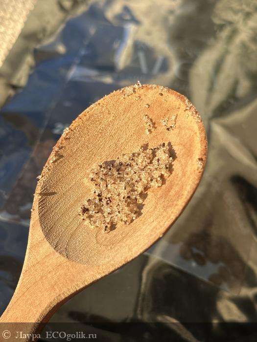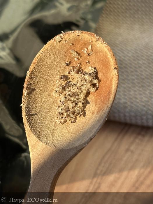 Сам скраб сыпучий, это идеально для тех, кто устал от масляных пленок, или на лето, когда масла тяжело воспринимаются кожей. Еще такая сыпучая текстура мне нравится тем, что она более жесткая. Я такое обожаю. Я за хардкор.