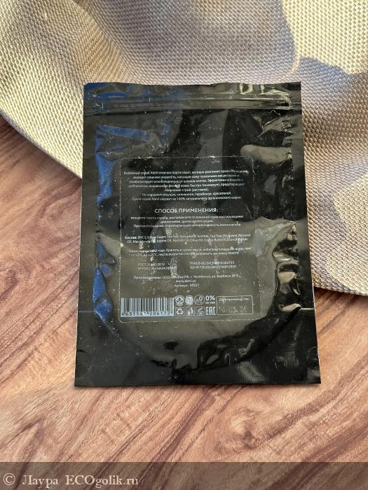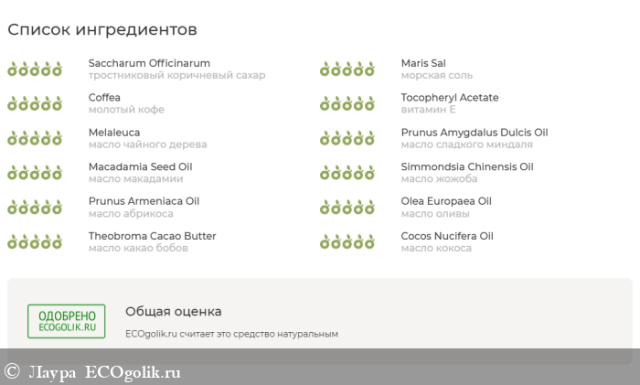 Тростниковый коричневый сахар, морская соль, молотый кофе, витамин Е, масло чайного дерева,