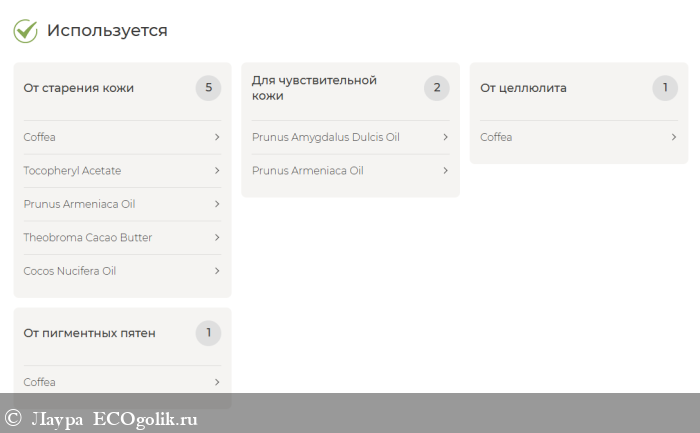 За счет мелкого помола кофе, он действует как шлифовка. Кожа невероятно гладкая, упругая, видно, что скраб хорошо разгоняет застойную лимфу.