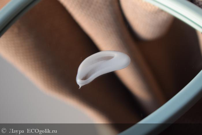Крем однородной консистенции, плотной текстуры, но наносить его приятно. Он растягивается на теплых пальцах, я наношу на чуть влажное лицо после тоника, так еще лучше ложится и укрывает собой весь кожный покров. Крем впитывается быстро, не оставаясь жирным щитом.