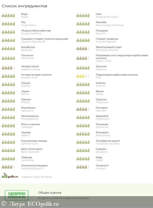 В составе целых 39 ингредиентов, я все никак не привыкну к такой щедрости. Ну и ладно, главное работает.